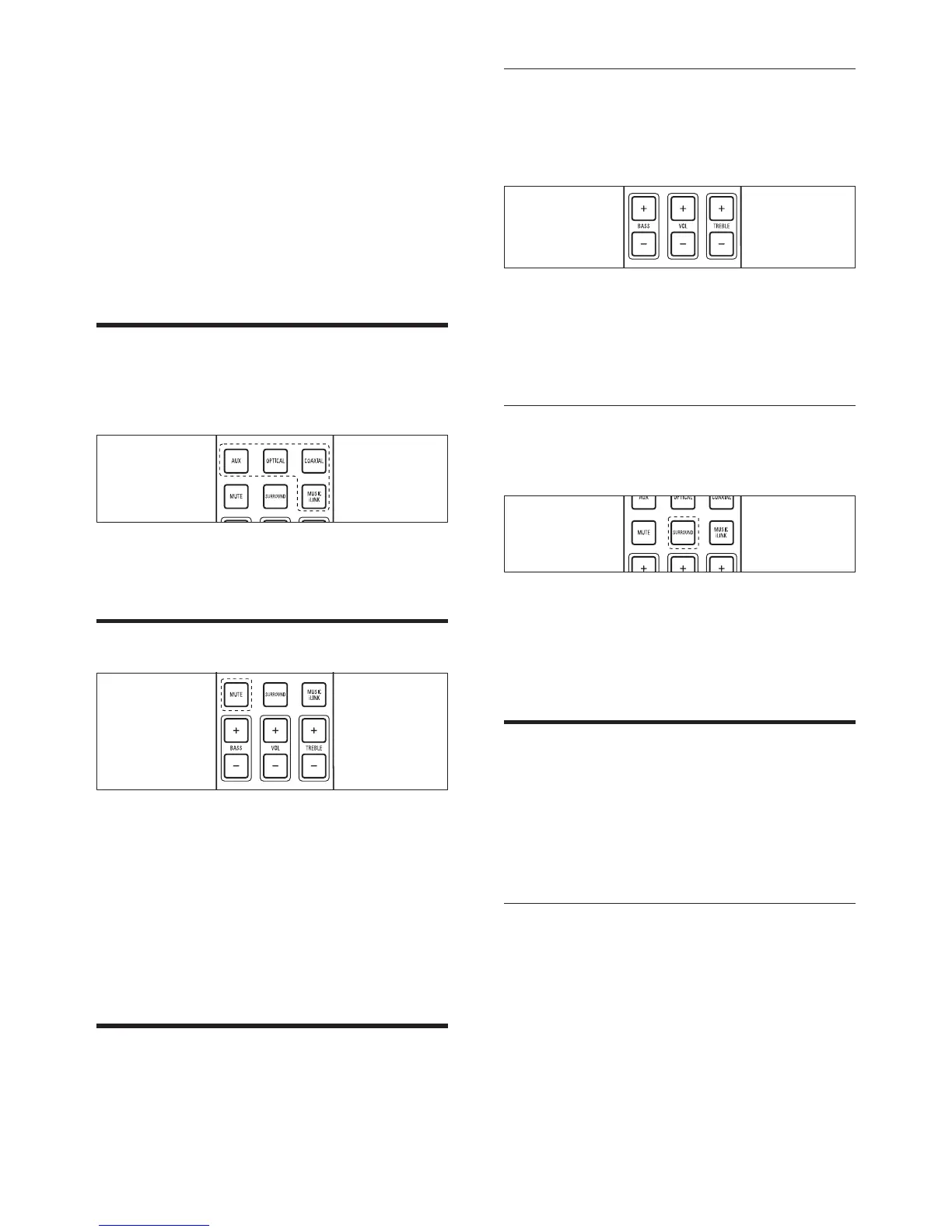 Press TREBLE +/- or BASS +/- to increase or