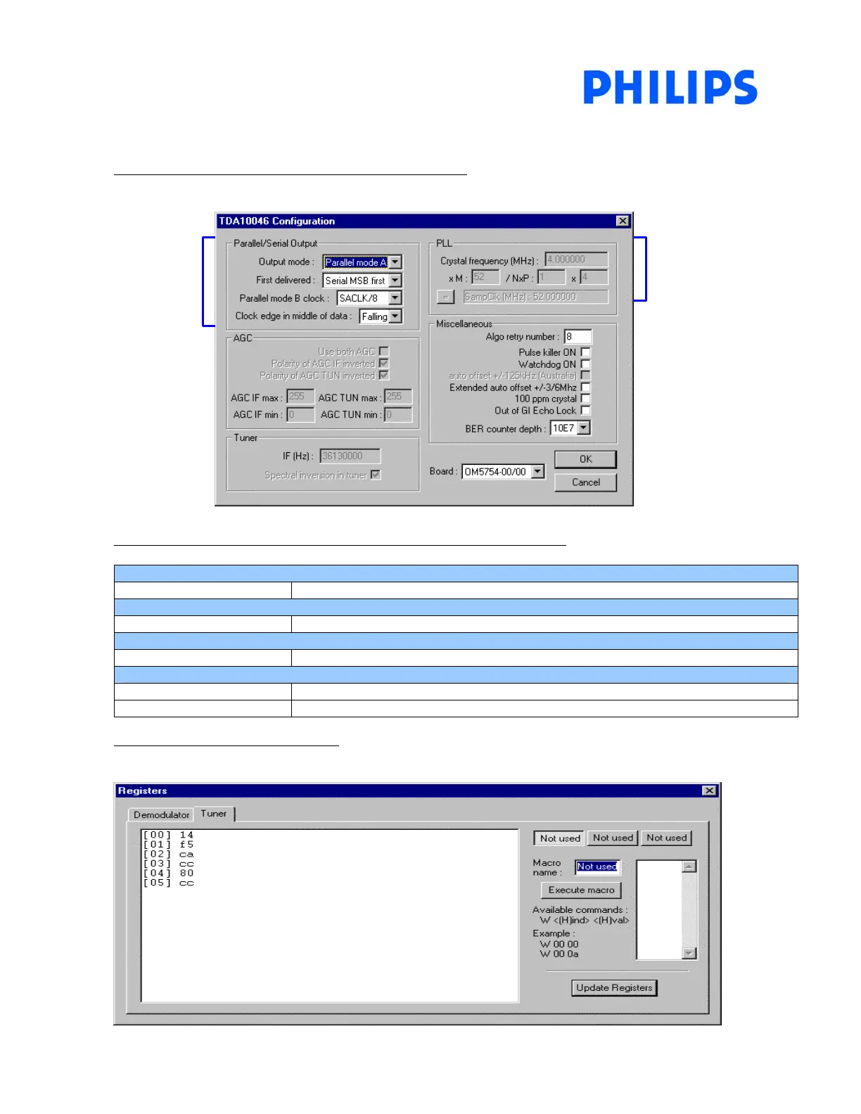 Table 5.4 Descriptions of the TDA10046 board configuration window