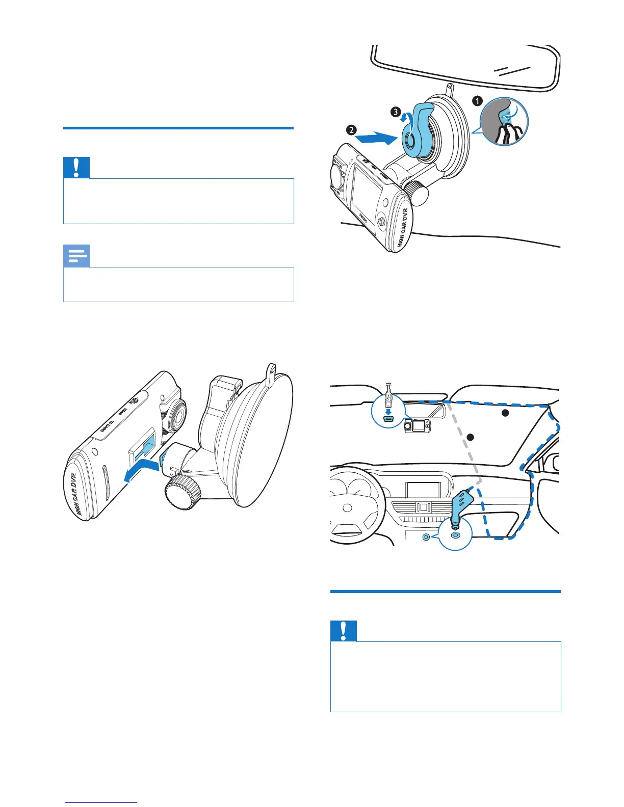 • Do not place the driving recorder in locations where