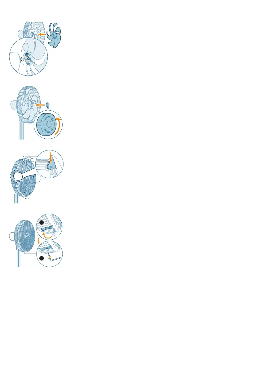 7 Pasang bilah kipas seperti yang ditunjukkan dalam ilustrasi.