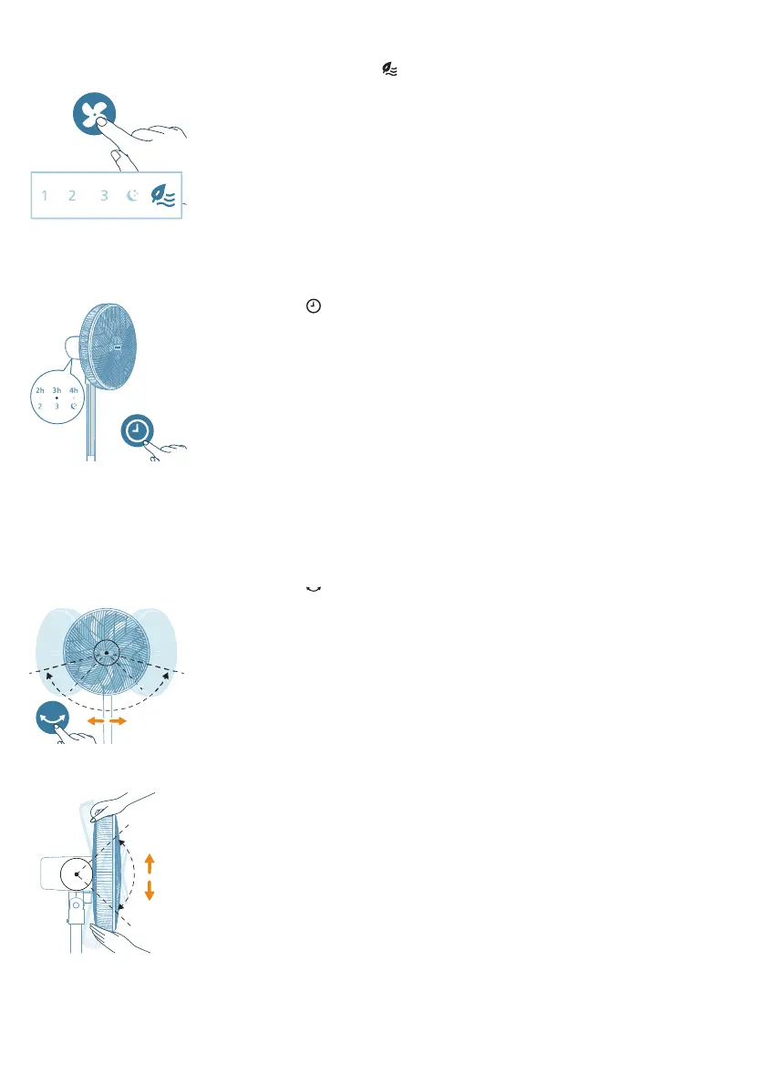 Tekan butang pada perkakas untuk mengaktifkan ciri ayunan kipas anda.