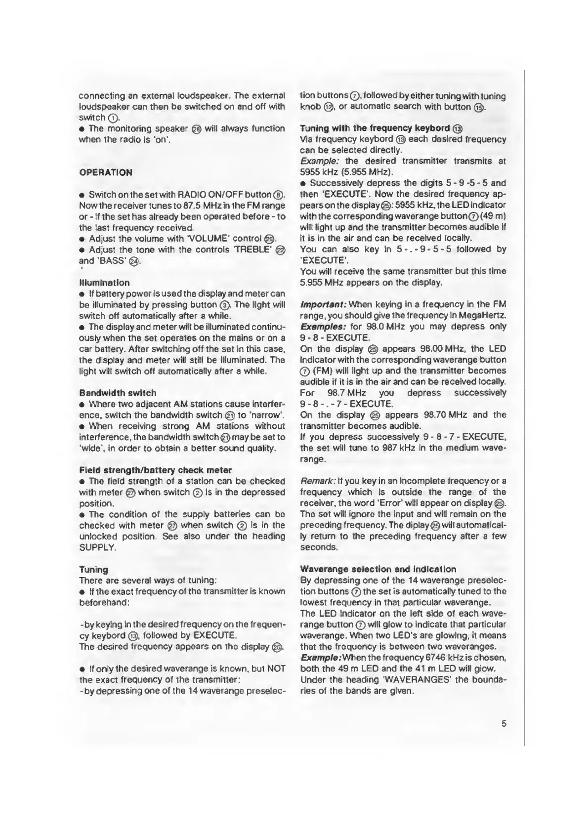 Philips D 2999 - RADIO OPERATION FUNDAMENTALS; Initial Power On and Basic Tuning; Display and Illumination Control; Bandwidth and Sensitivity Adjustment