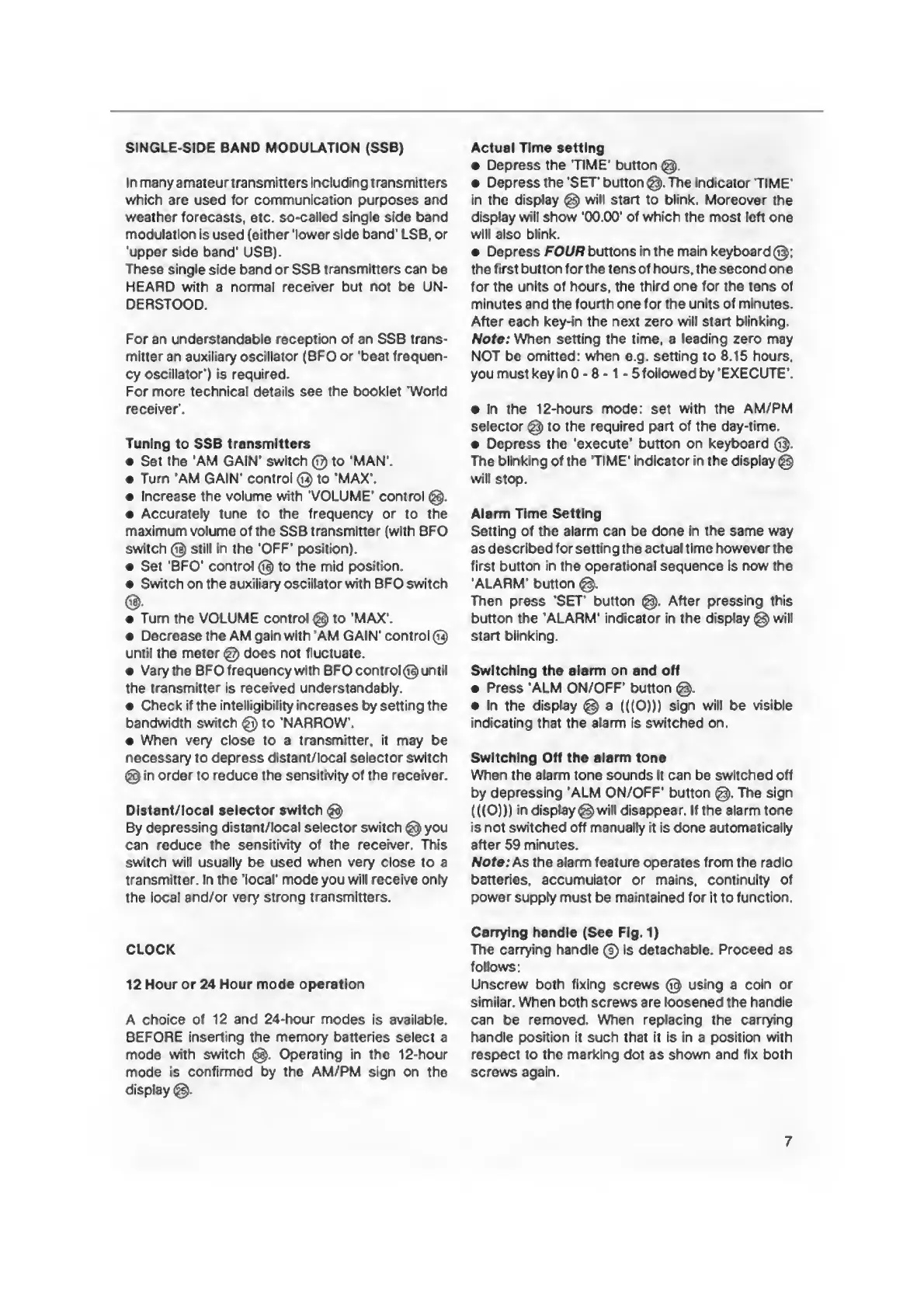 Philips D 2999 - SPECIALIZED FEATURES AND FUNCTIONS; Single-Side Band (SSB) Reception; Clock and Alarm System Setup; Carrying Handle Installation and Removal