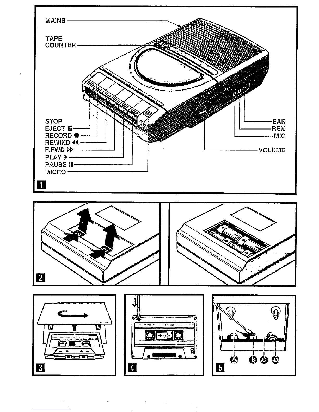 Philips D 6280 - Product View and Parts Identification; Batteries Installation; Loading a Cassette