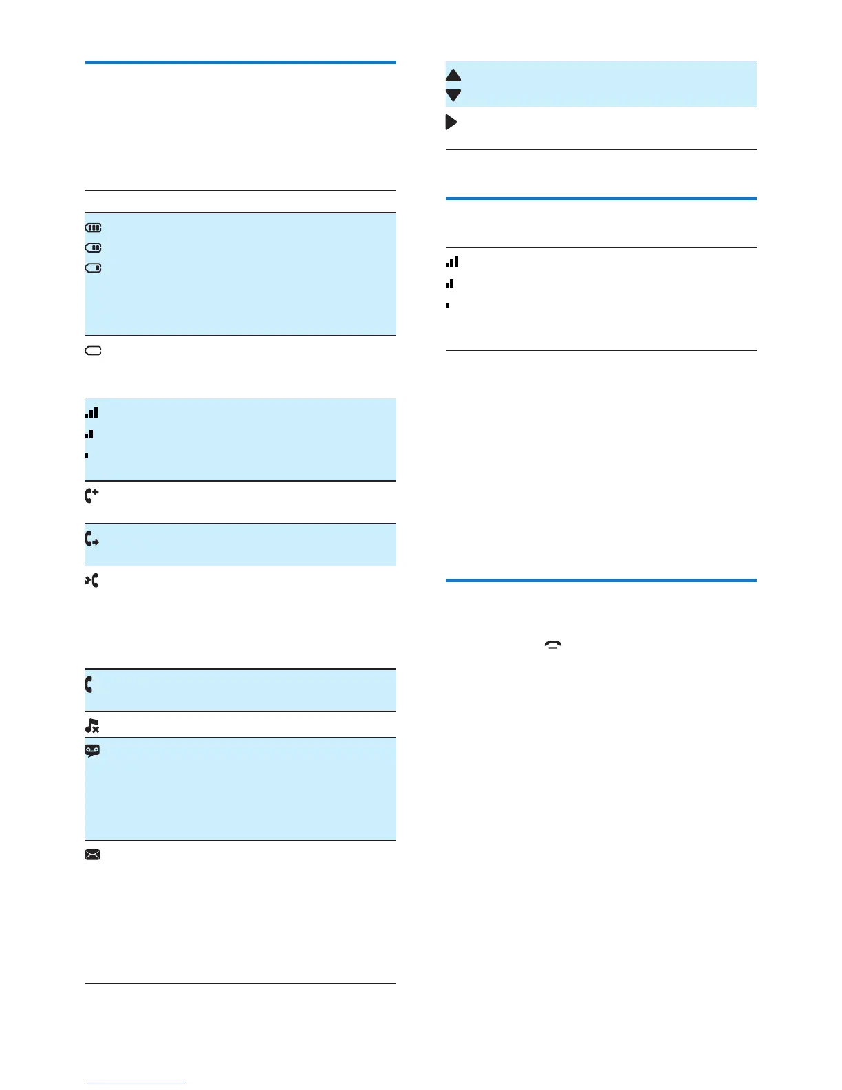 Philips D135 - Display Icons; Check the Signal Strength; Switch the Handset on or off