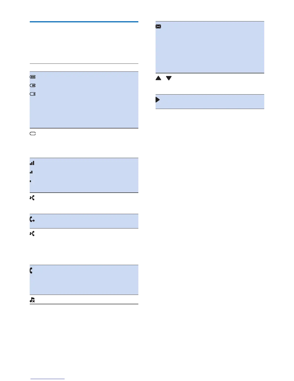 In standby mode, the icons shown on the main