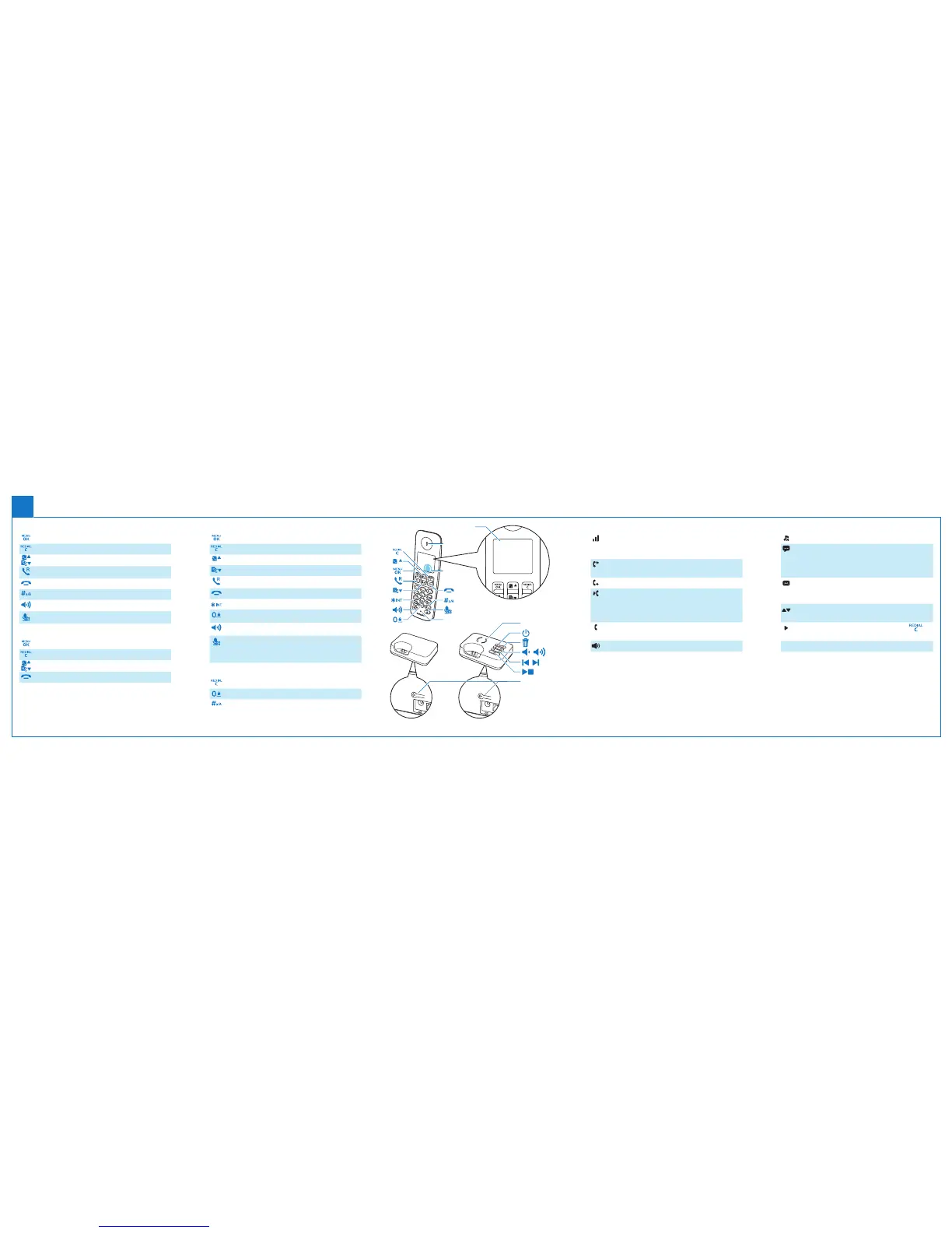 Switch the handset on or off (press and hold).