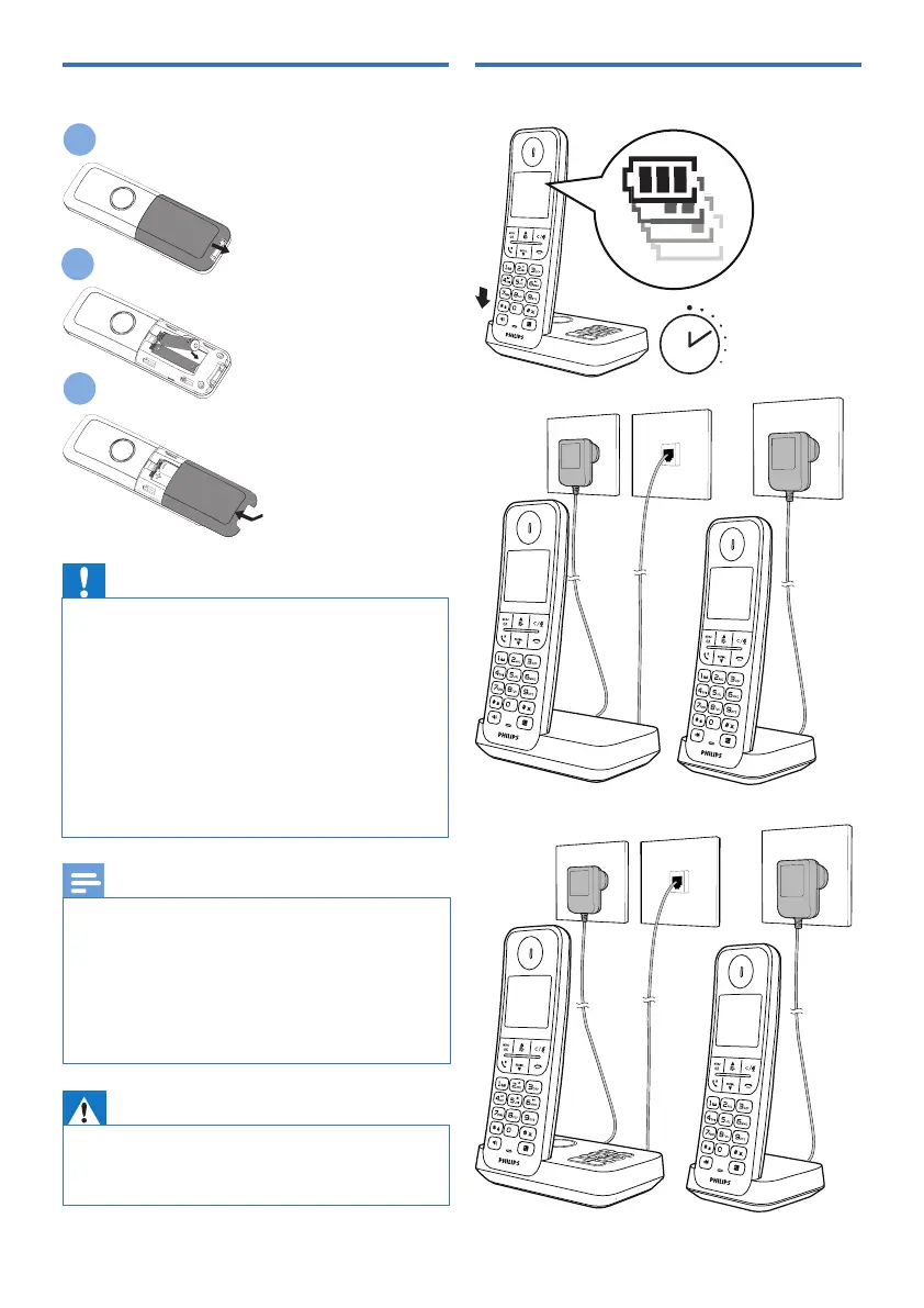 Install the supplied batteries Charge the handset batteries