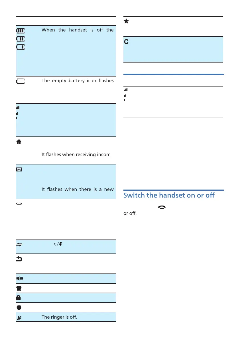 Press and hold to switch the handset on