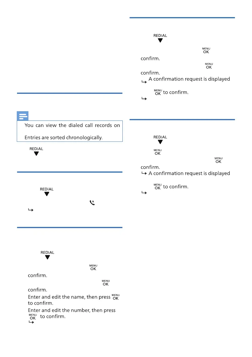 1 Press to enter the list of dialed