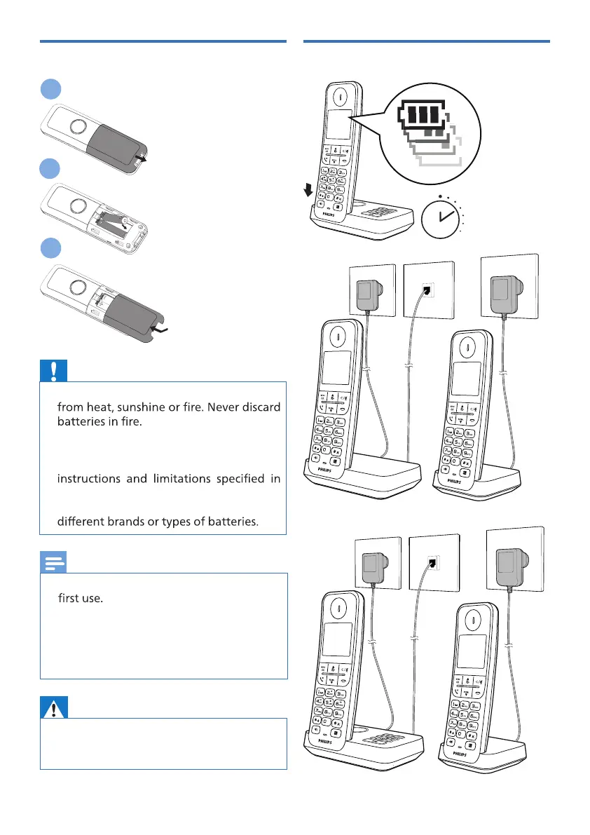 Install the supplied batteries Charge the handset batteries