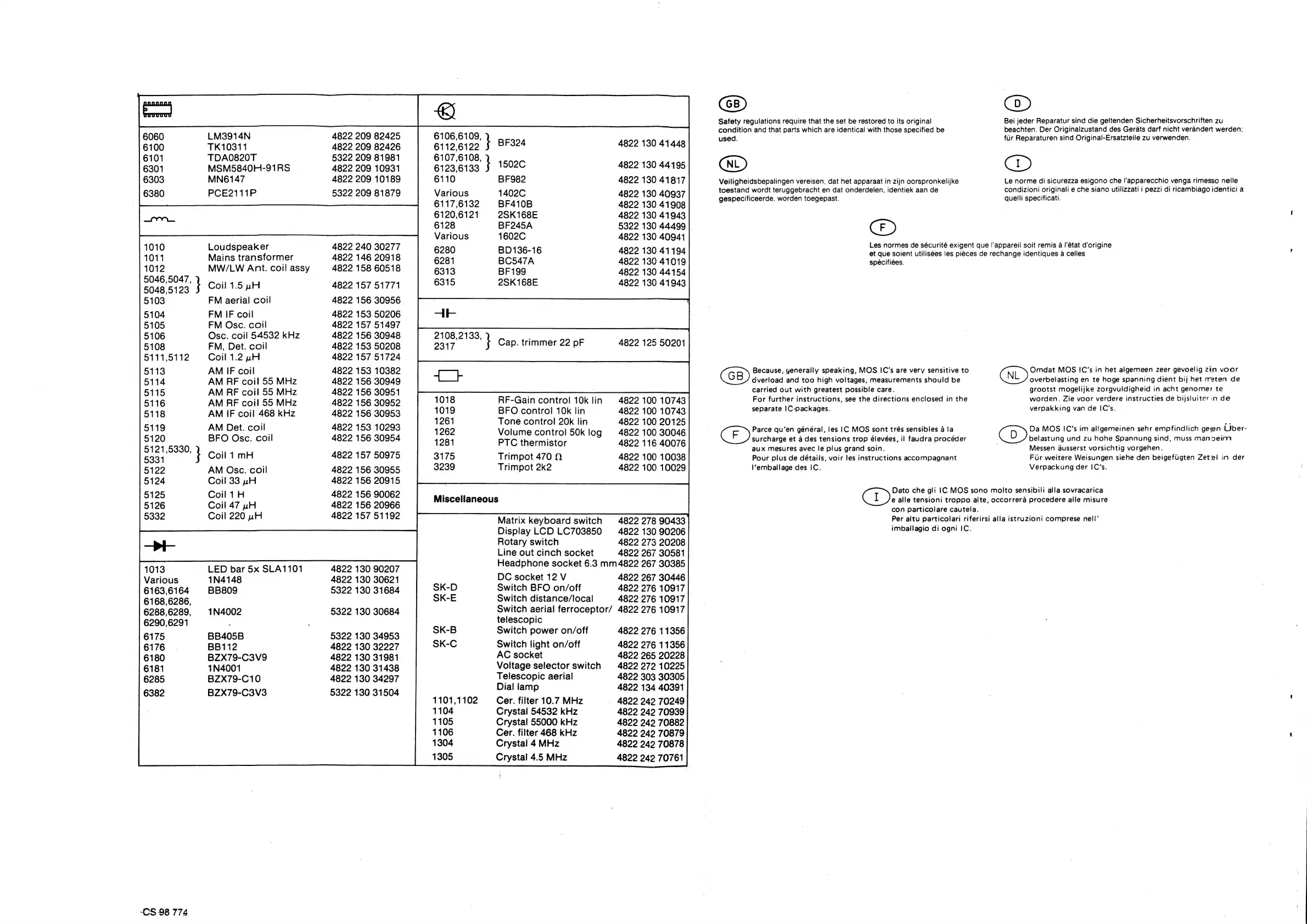 Philips D2935 - Safety and Component Data; Essential Safety Precautions; Key Component Identification