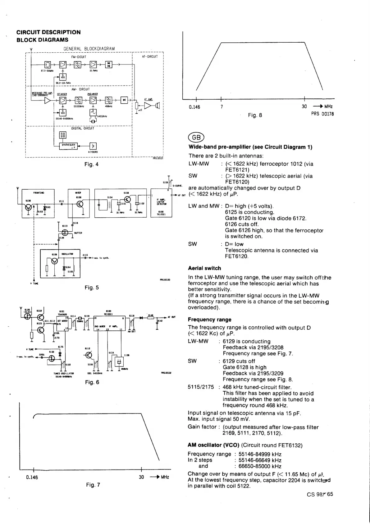 Philips D2935 - Radio Circuit Architecture; General Block Diagram; Wideband Pre-amplifier Circuit; Aerial Switching Mechanism