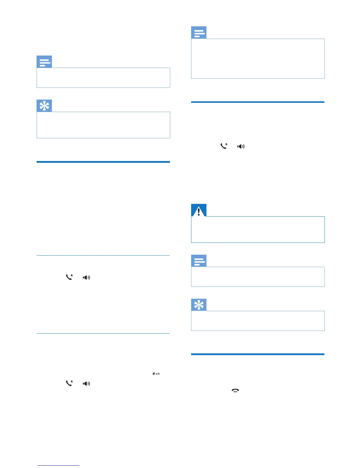 • When the handset rings or when the handsfree is