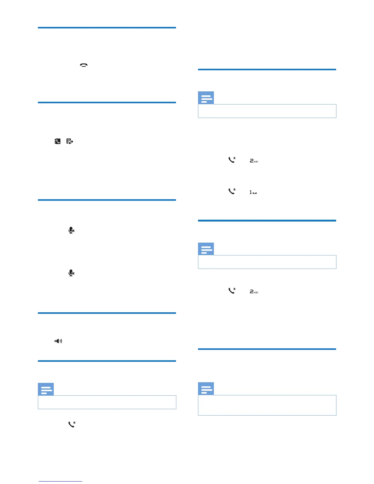 Philips D605 - End a call; Adjust the earpiece;speaker volume; Mute the microphone; Turn the speaker on or off