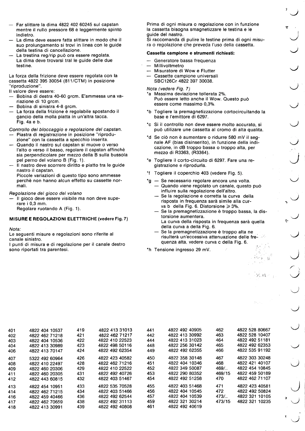 - Far slittare la dima 4822 402 60245 sul capstan Prima di ogni misura 0 regolazione con in funzione -