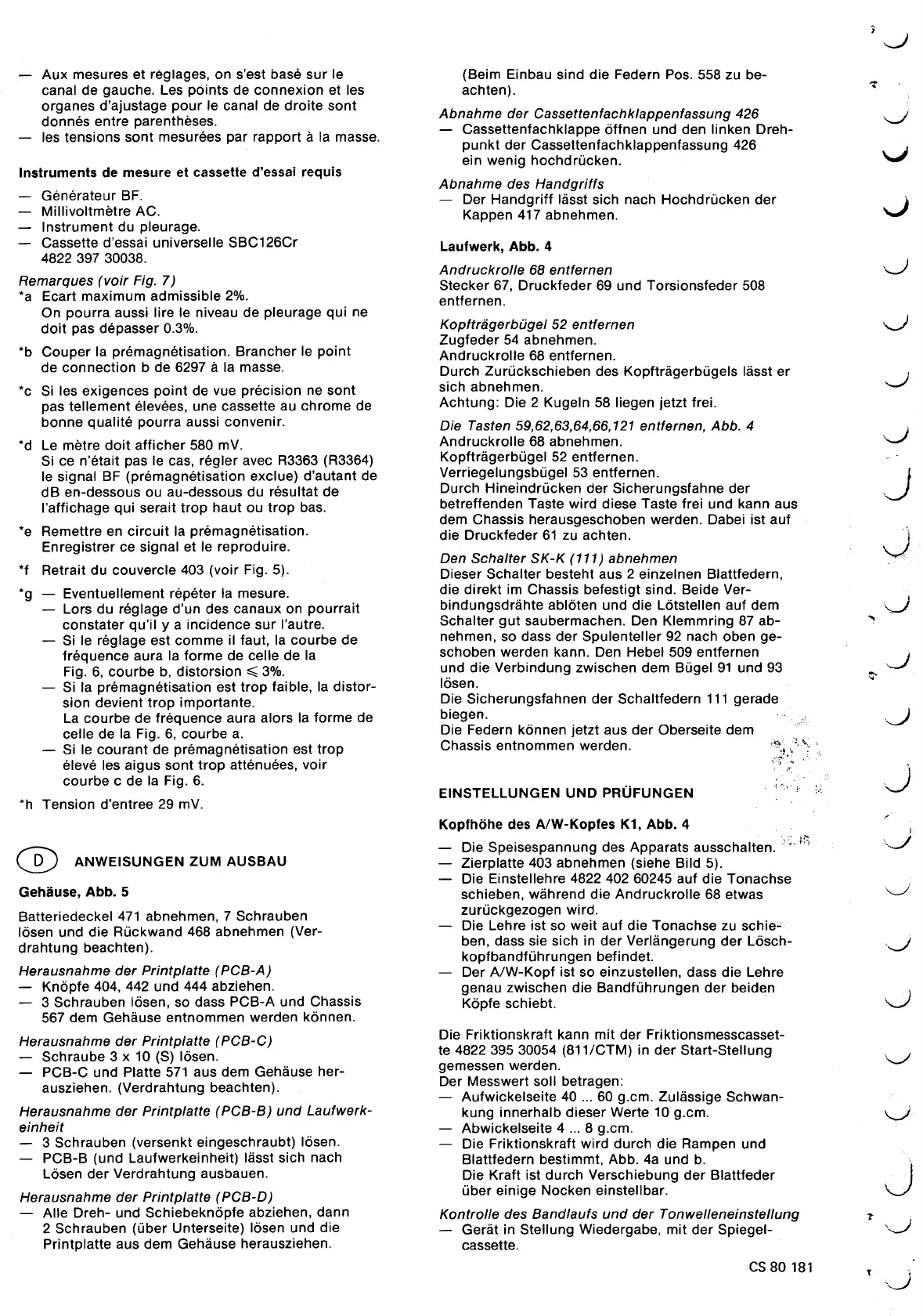 *d Le mètre doit afficher 580 mV. Andruckrolle 68 abnehmen. J