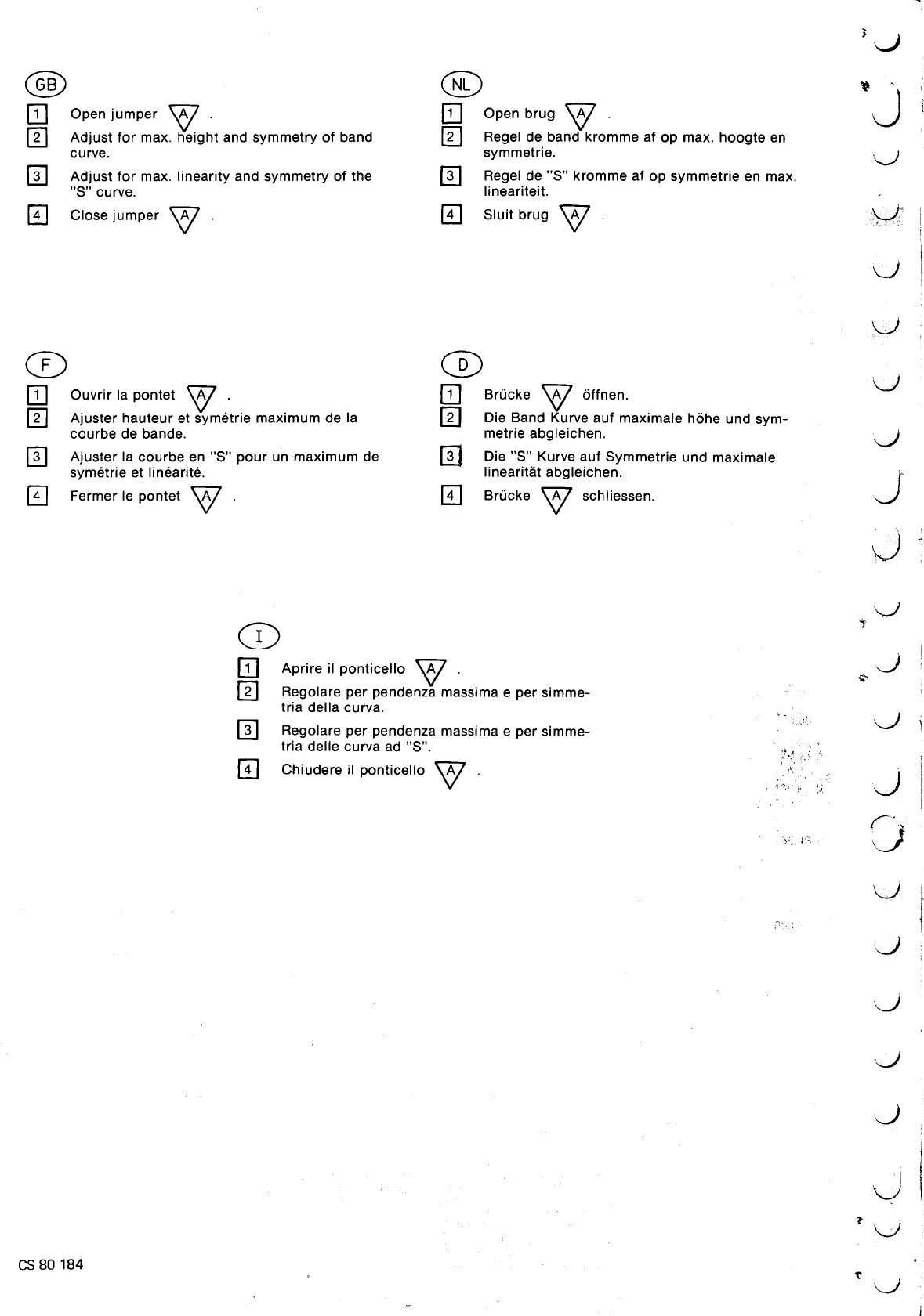 ~ Adjust tor max. linearity and symmetry of the [i] Regel de "S" kromme af op symmetrie en max.