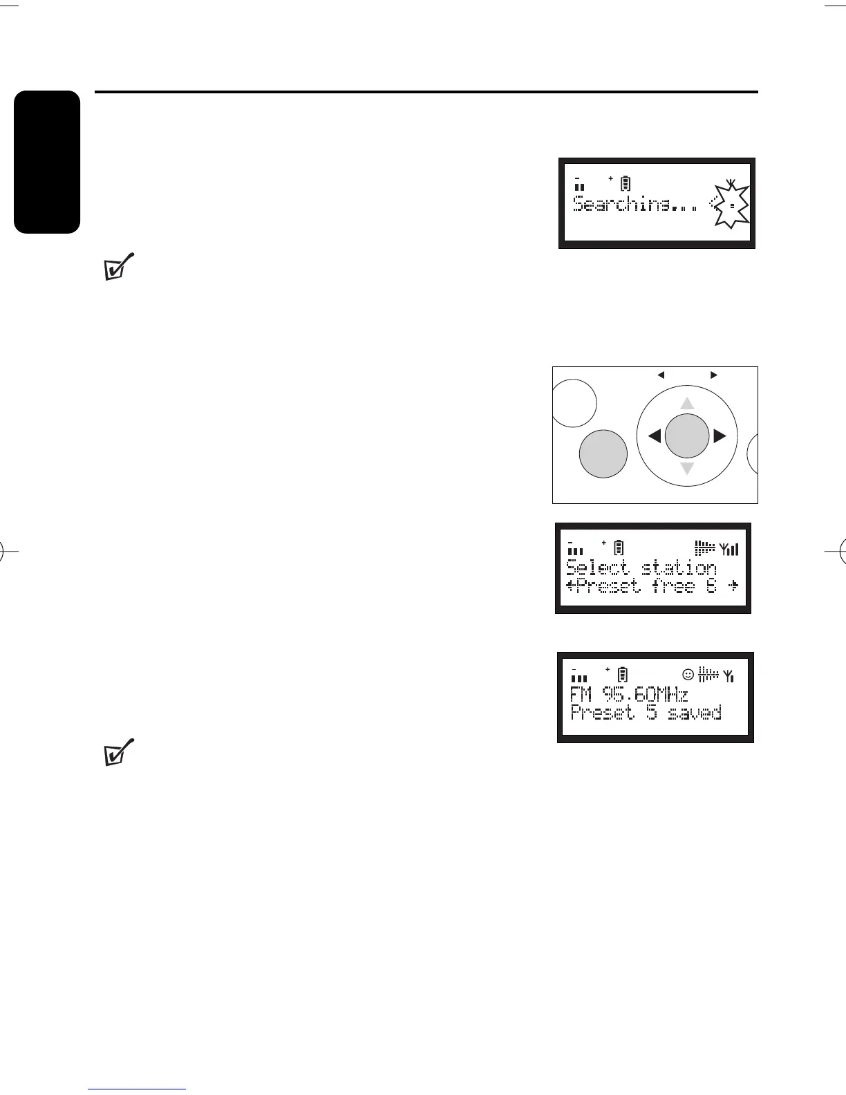 Display shows Searching ... . To select another station,