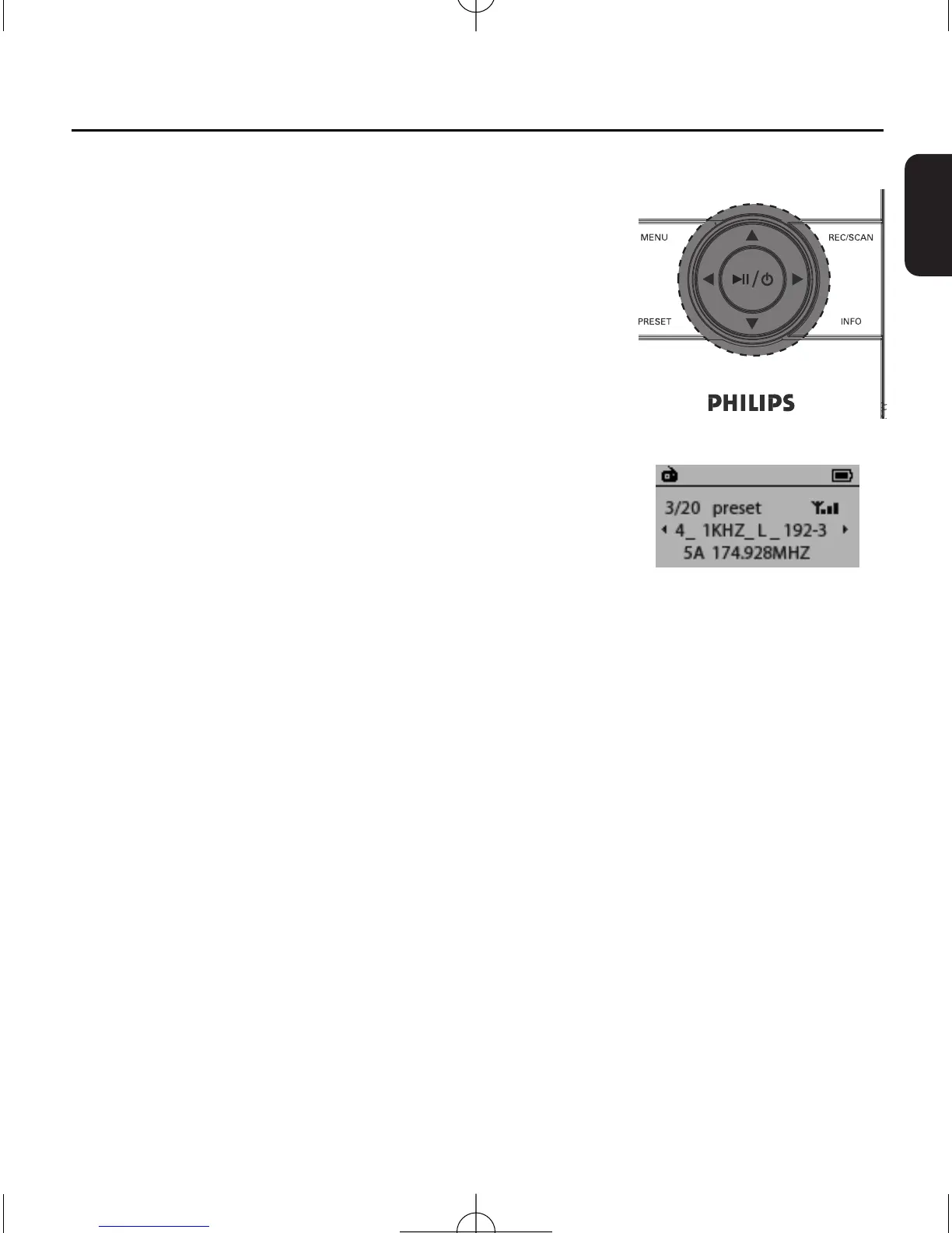 1 Press PRESET to enter the Preset radio station mode.