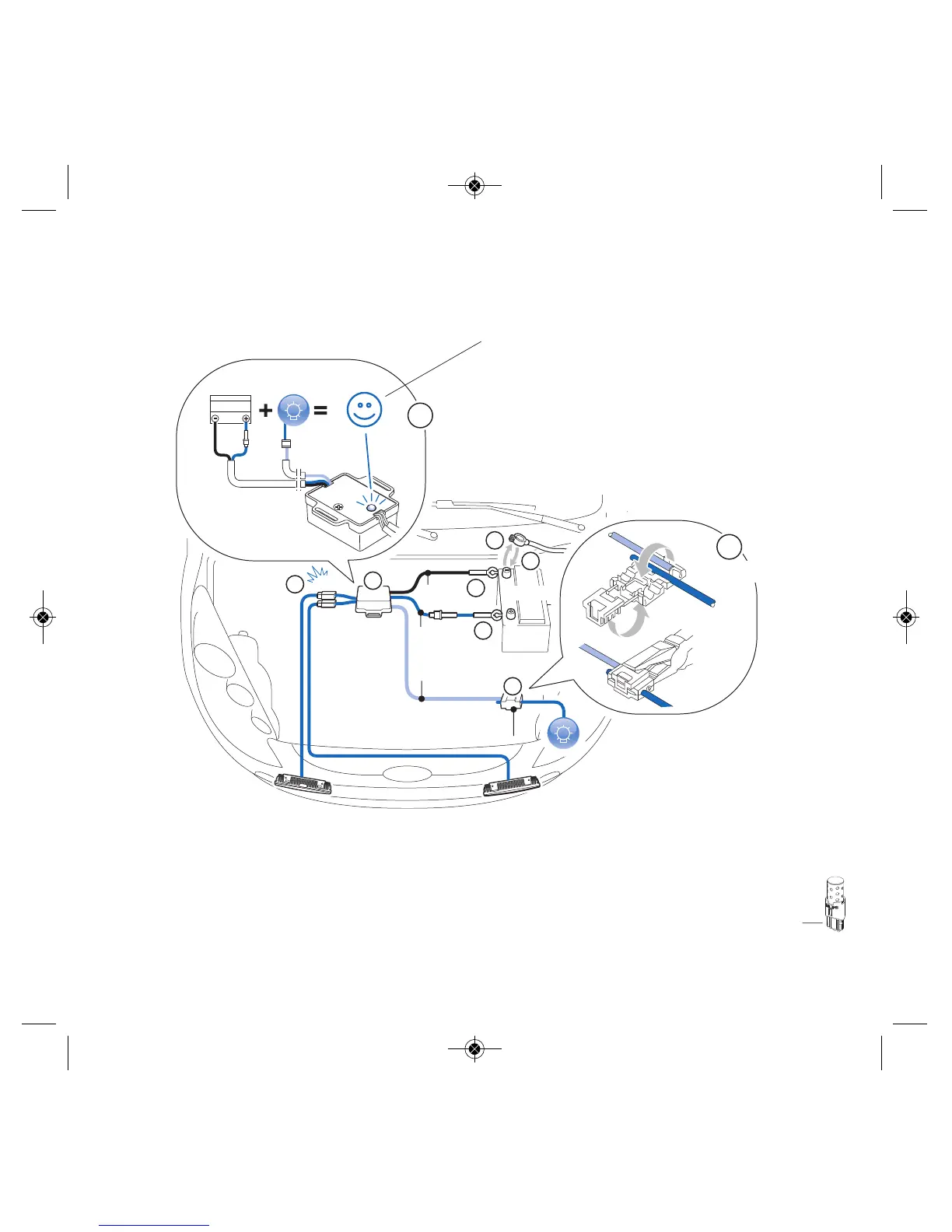 Sluit de LED DayLight 8 modules aan zoals hieronder beschreven in de met nummers aangegeven volgorde: