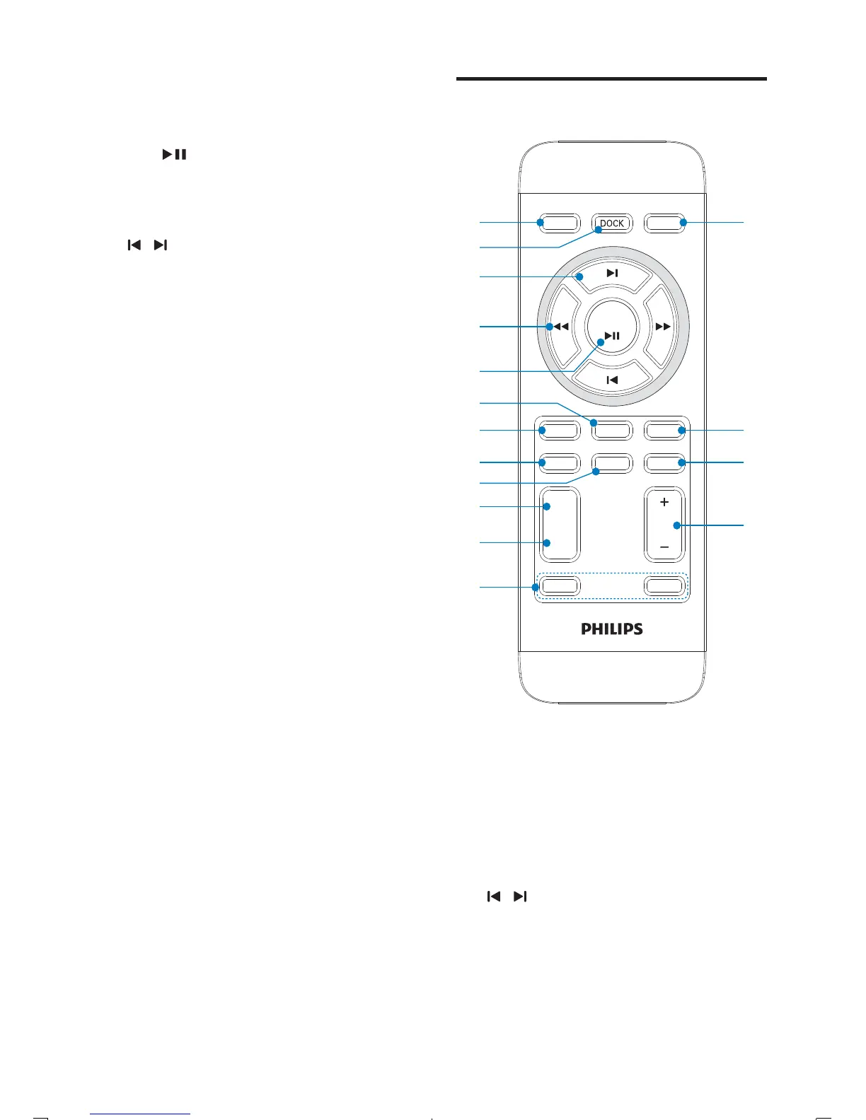 Start or pause iPod/iPhone/iPad play.•