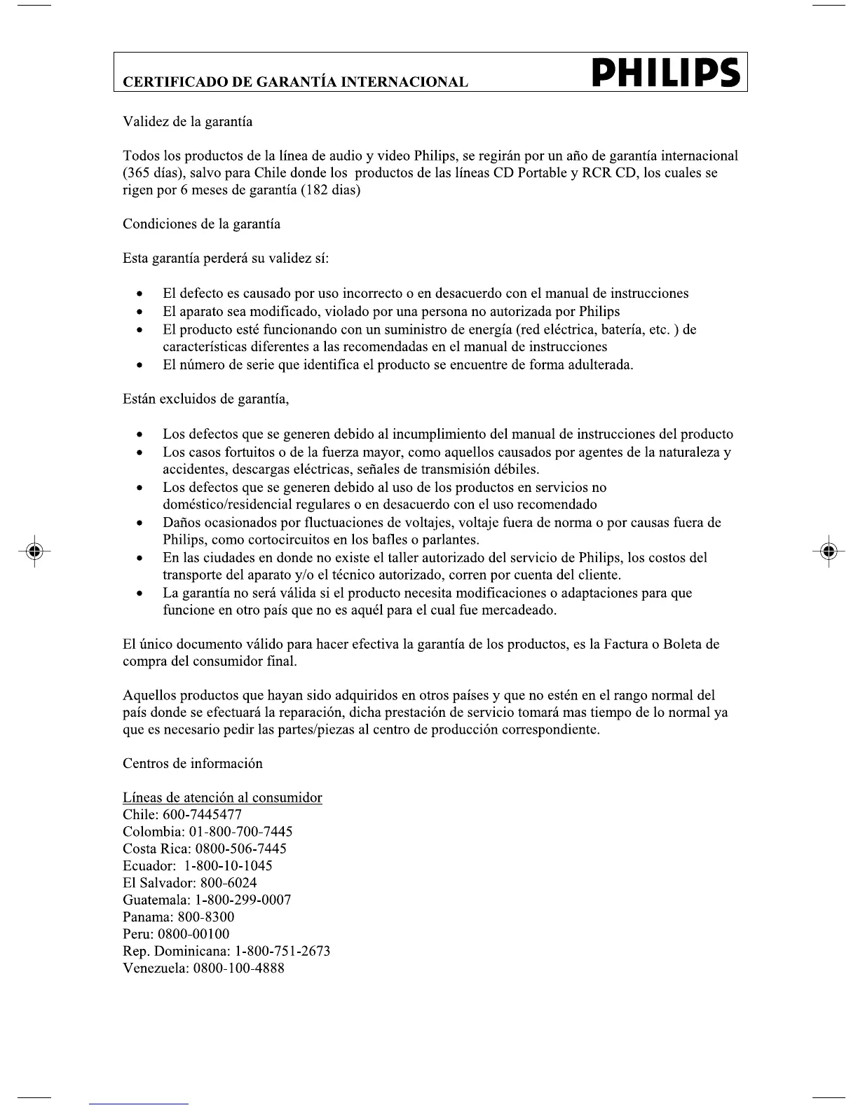 Philips DC199B - International Warranty Certificate