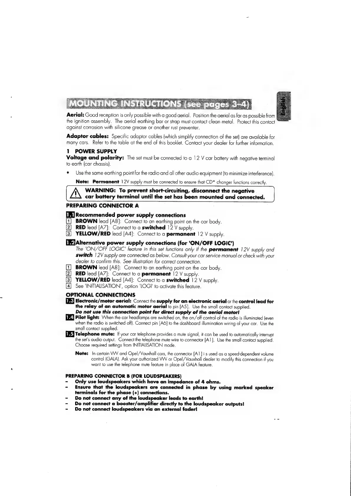 Philips DC612 - Mounting Instructions; Power Supply Connections; Connector A and Loudspeaker Connections