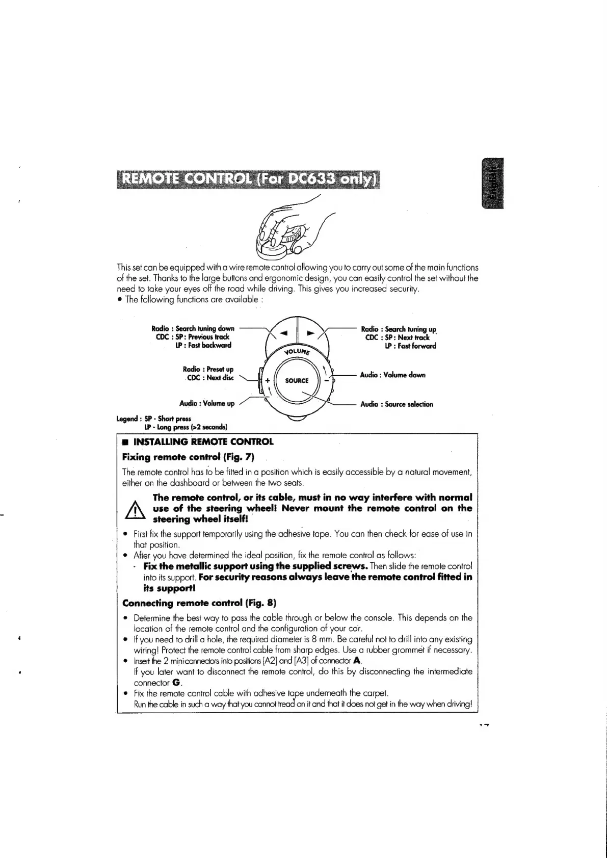 Philips DC612 - Remote Control Operations; Fixing Remote Control; Connecting Remote Control