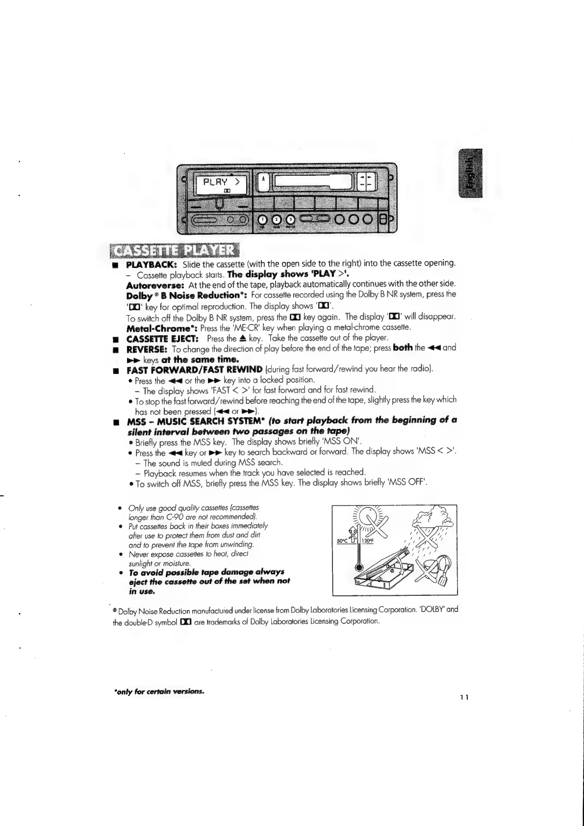 Philips DC632 - Cassette Player Operation; Playback Modes; Dolby B Noise Reduction; Fast Forward and Rewind