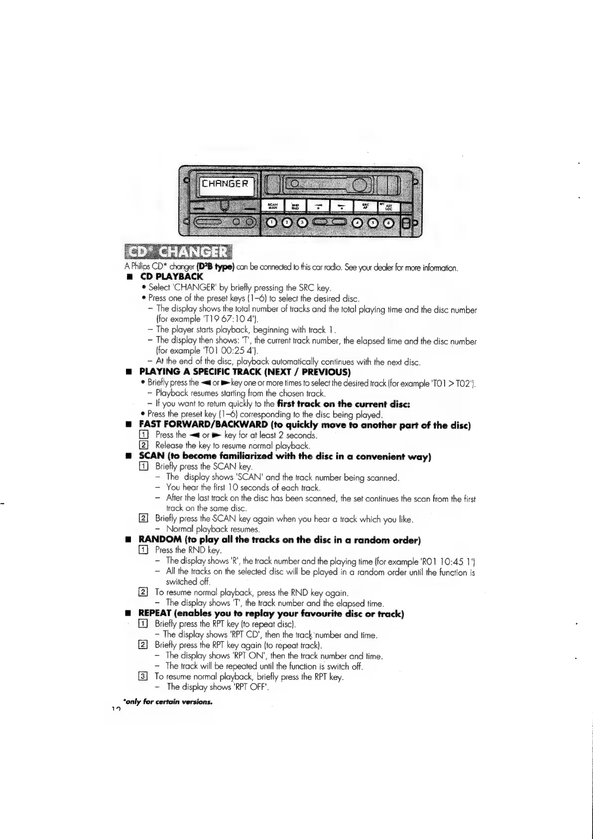 Philips DC632 - CD Changer Operation; CD Playback; Track Selection (Next;Previous); Scan Function