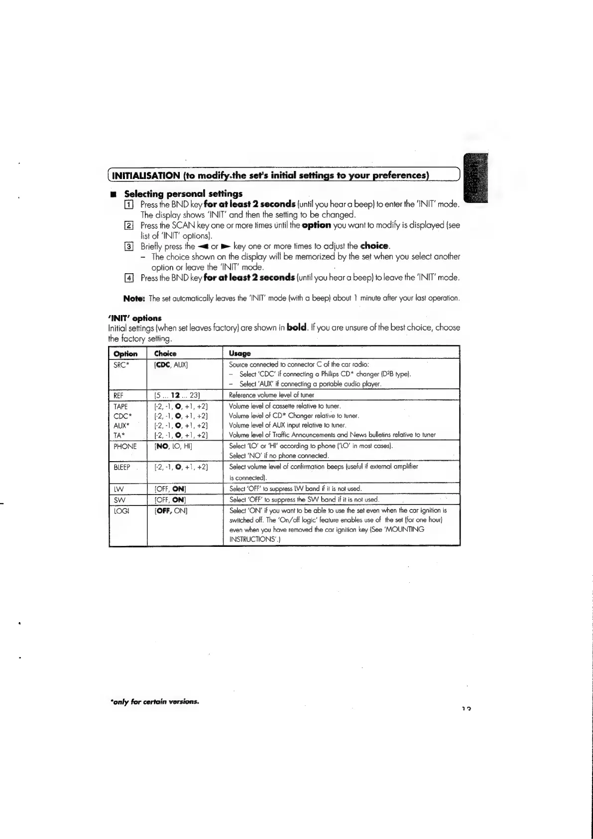 Philips DC632 - System Initialization and Settings; Entering Initialization Mode; Adjusting Personal Settings; INIT Options Explained