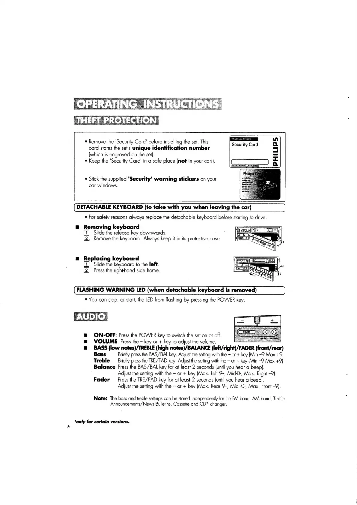 Philips DC633 - Theft Protection and Basic Controls; Theft Protection Measures; Detachable Keyboard Operation; Audio Adjustments