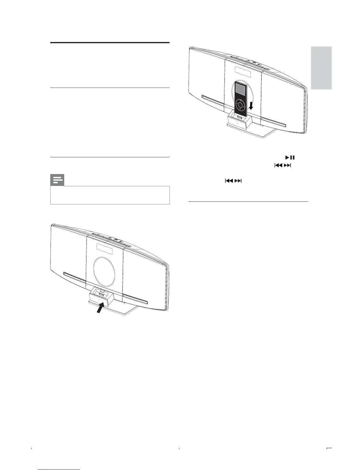 2 Place the iPod/iPhone player in the dock.