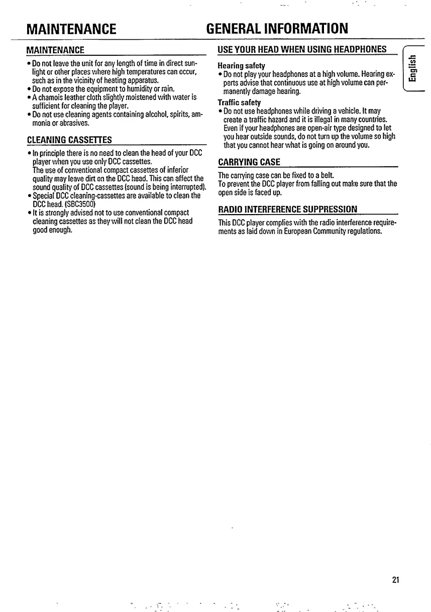 Philips DCC 170 - MAINTENANCE; General Maintenance Guidelines; Cleaning Cassettes and Heads; GENERAL INFORMATION