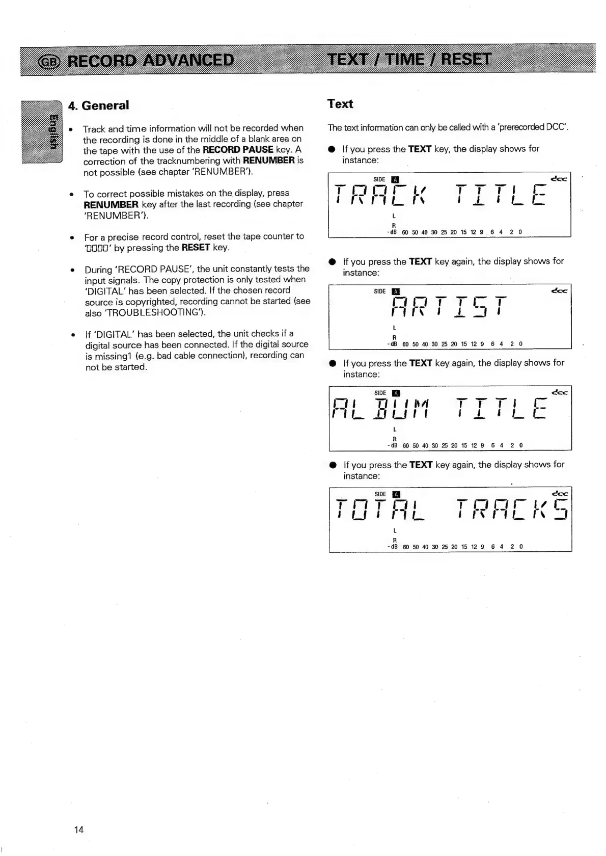 Philips DCC 300 - Advanced Recording Settings; General Recording Considerations; Displaying Text Information