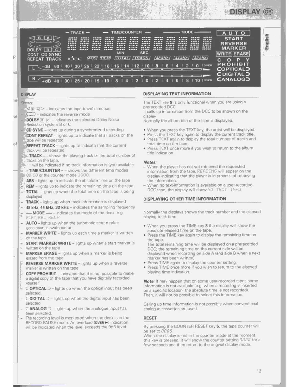 Philips DCC 900 - Display; Displaying Text Information; Displaying Other Time Information; Reset