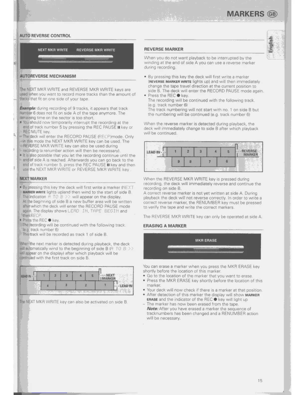 Philips DCC 900 - AUTO REVERSE CONTROL; NEXT MARKER; REVERSE MARKER; ERASING A MARKER