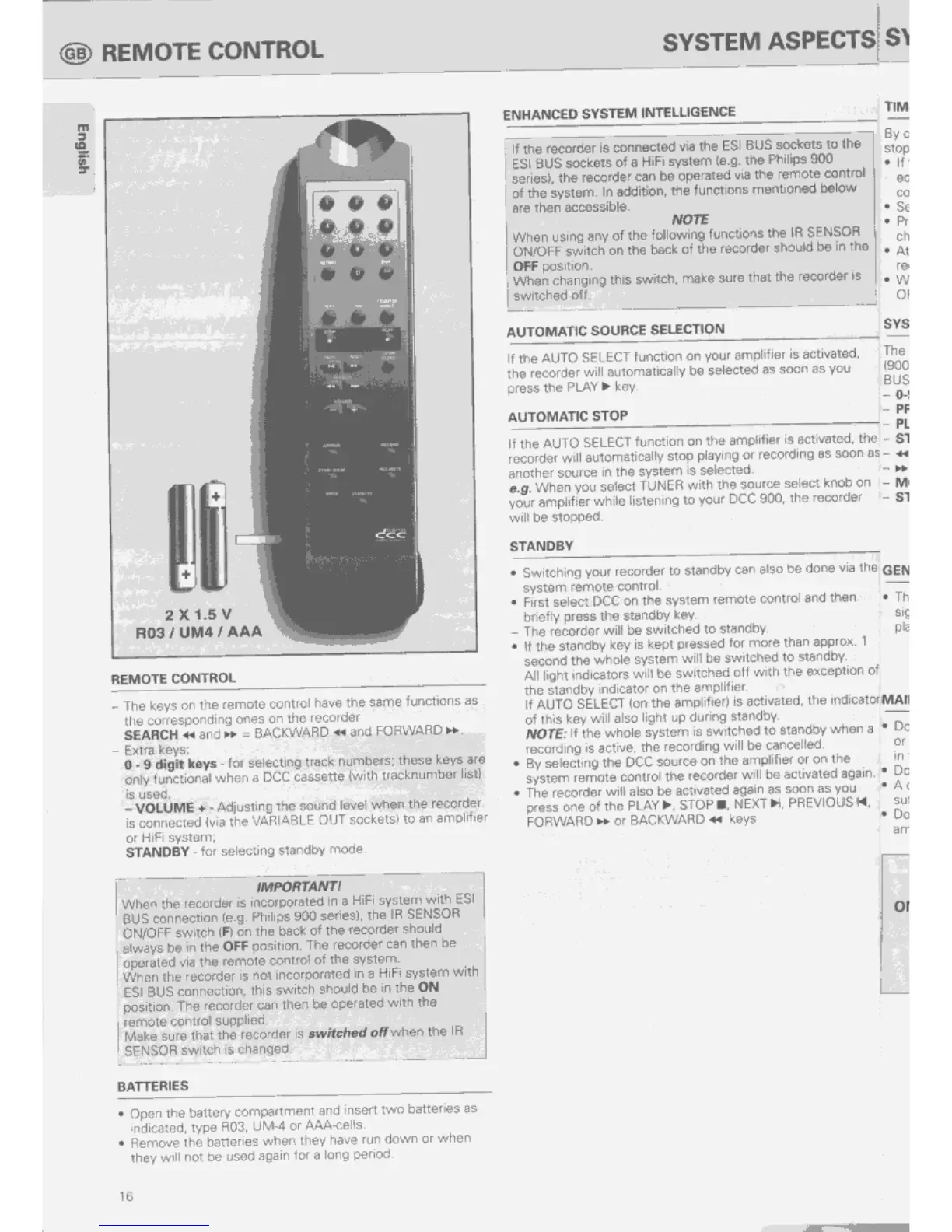 Philips DCC 900 - REMOTE CONTROL; SYSTEM ASPECTS; ENHANCED SYSTEM INTELLIGENCE