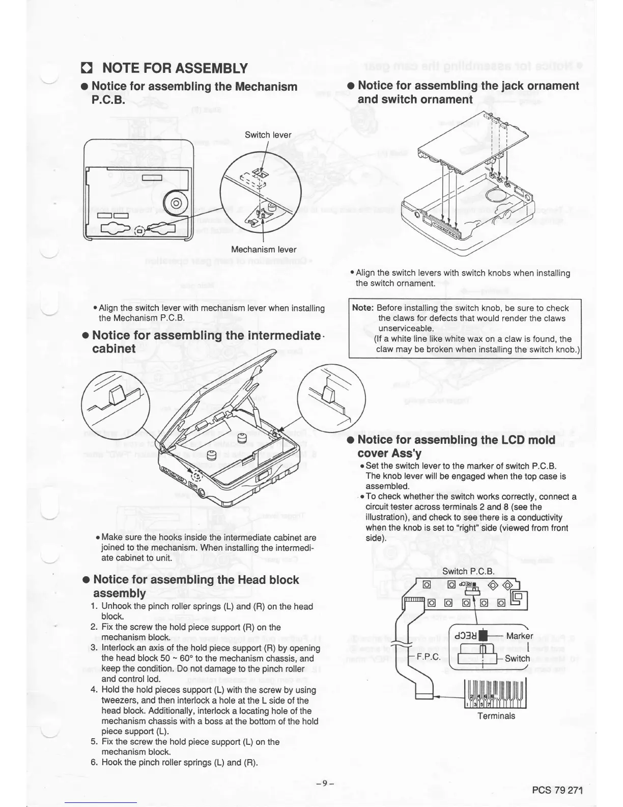 Philips DCC170/00 - Assembly Notes; PCB and Ornament Assembly Notices; Cabinet and LCD Assembly Notices; Head Block Assembly Notice