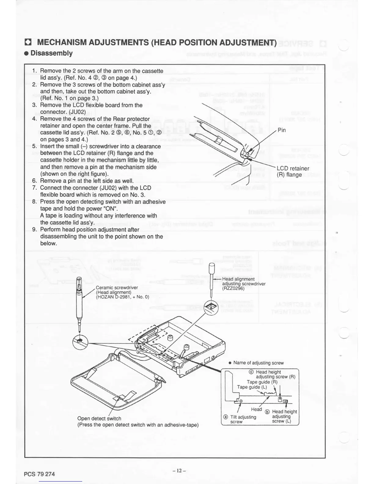 Philips DCC170/00 - Mechanism Adjustments; Head Position Adjustment Procedure