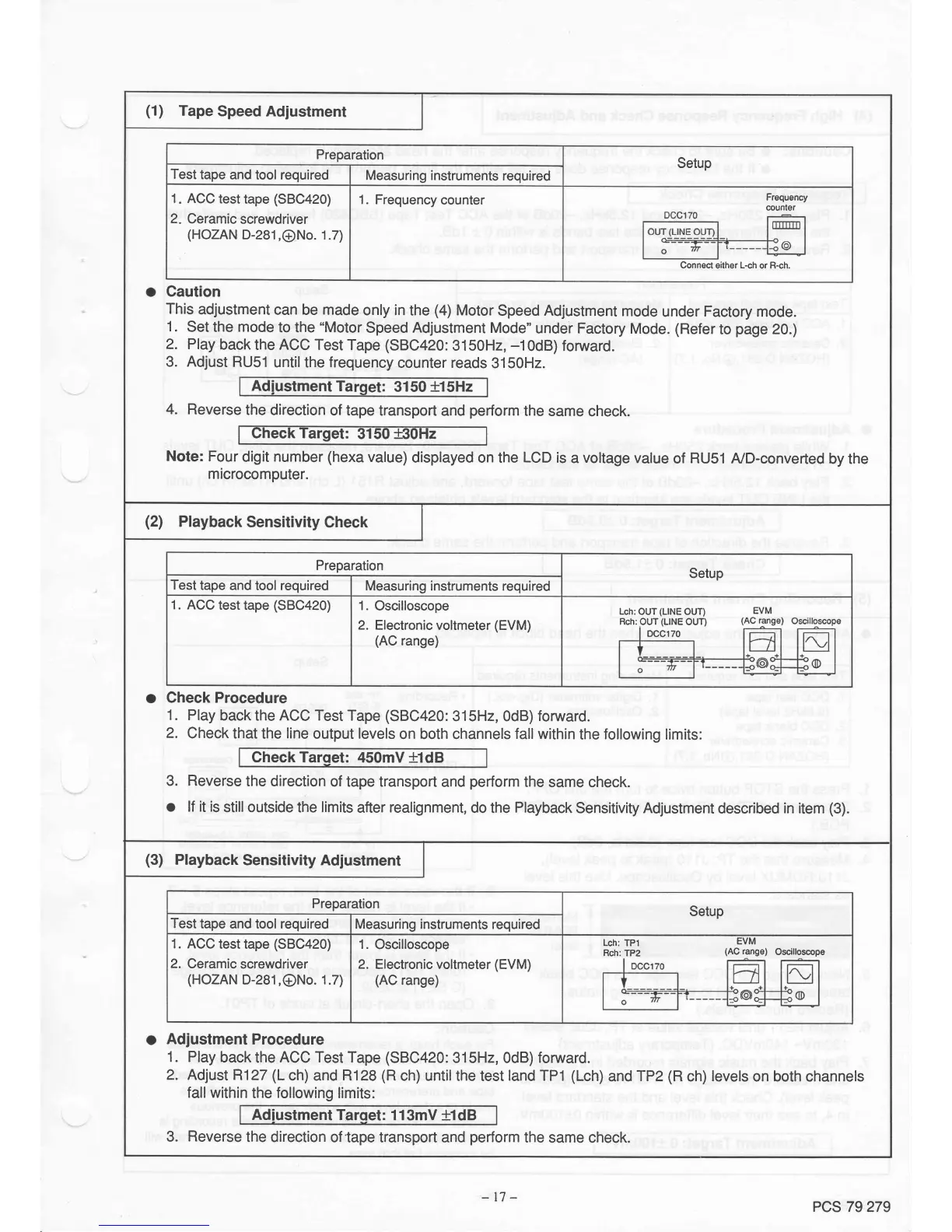 Philips DCC170/00 - Tape Speed and Playback Sensitivity Adjustments