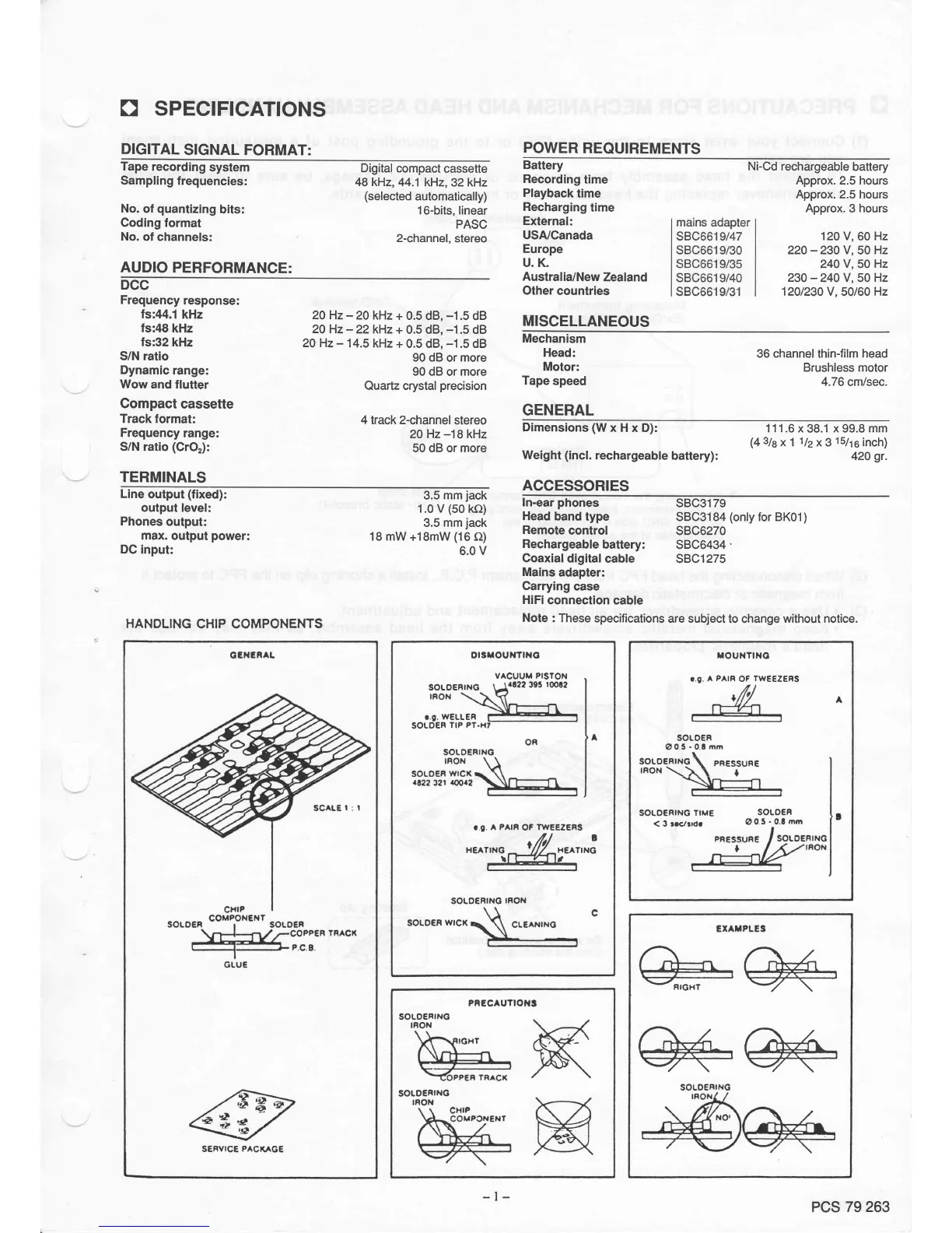 Philips DCC170/00 - Handling Chip Components; General Chip Component Handling Procedures; Chip Component Dismounting and Mounting Techniques; Chip Component Service Precautions