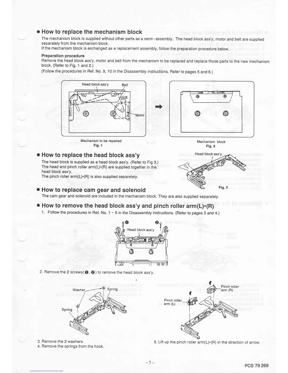 Philips DCC170/00 - Component Replacement Procedures; Mechanism Block Replacement Procedure; Head Block Assembly Replacement Procedure