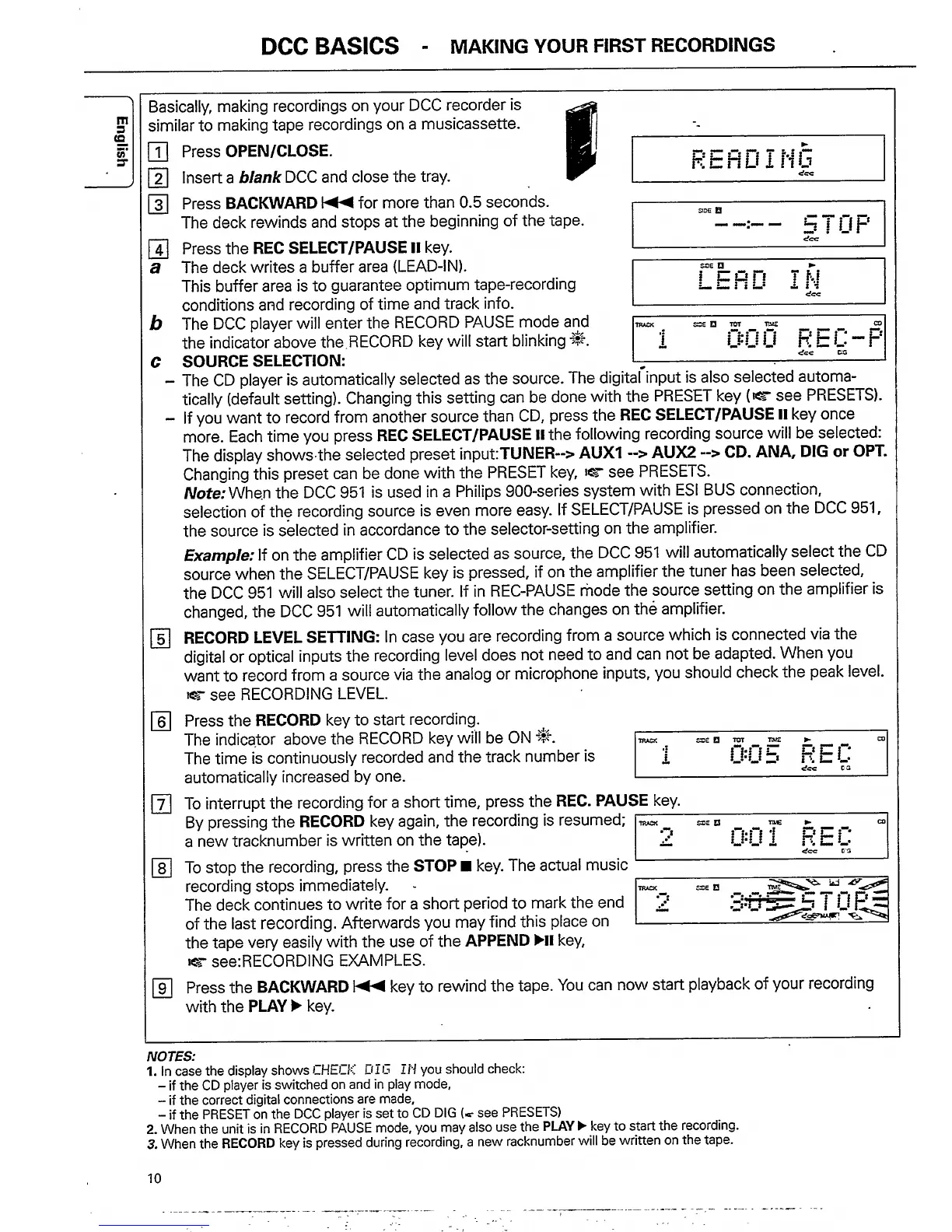 Philips DCC951/17S - Making Your First Recordings; Source Selection; Record Level Setting
