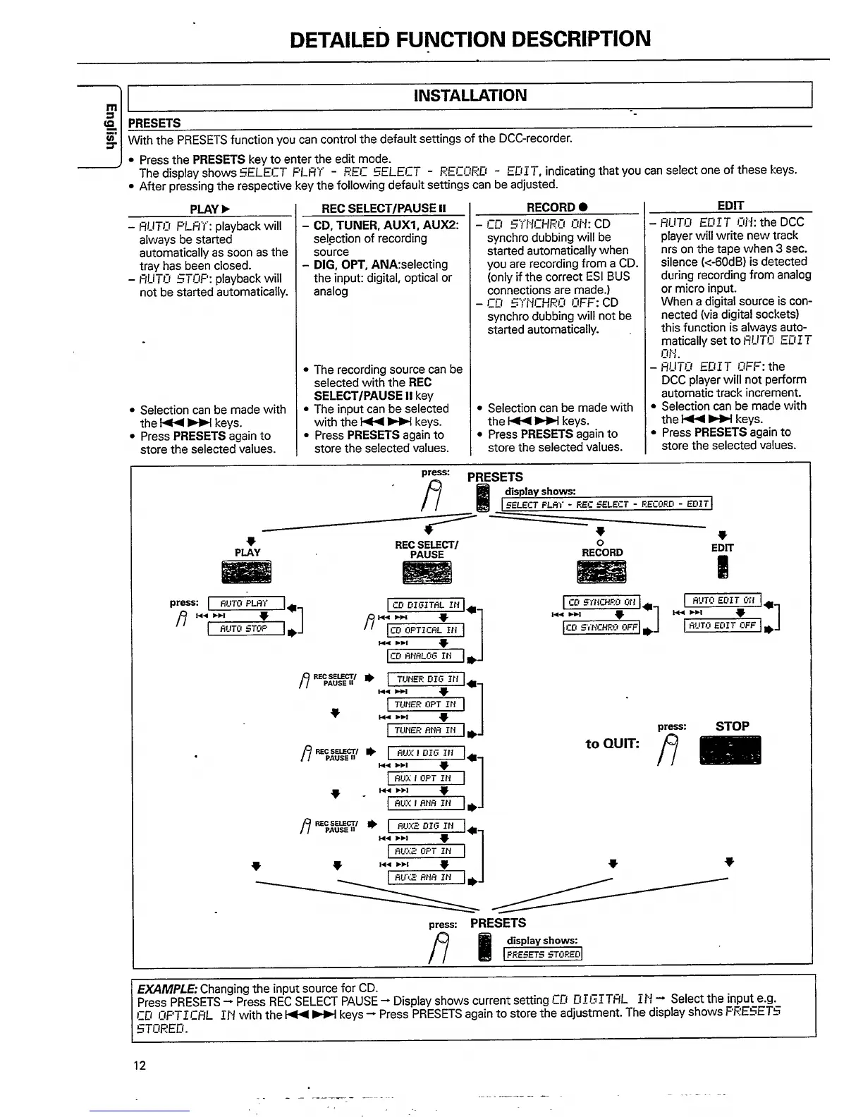 Philips DCC951/17S - Detailed Function Description; Presets