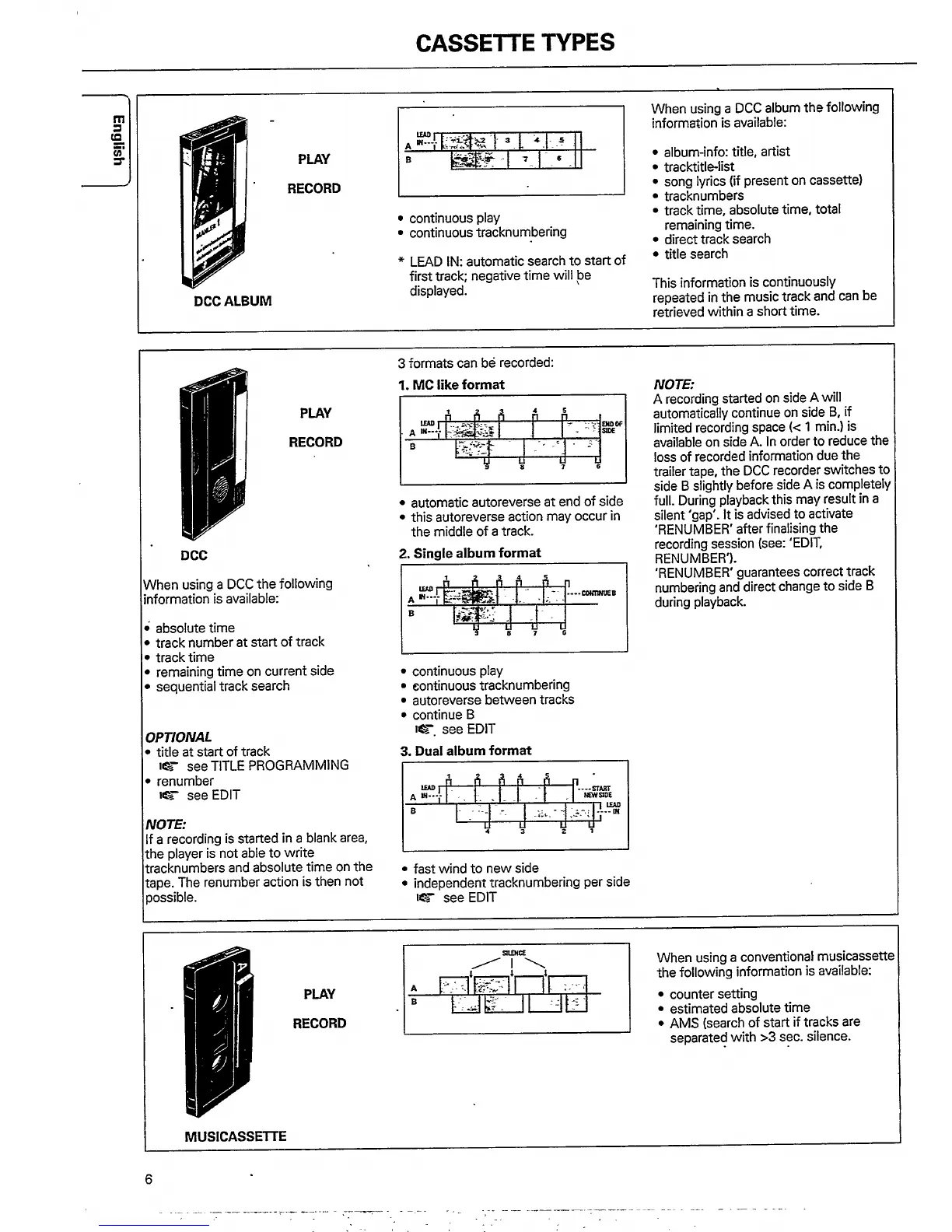 Philips DCC951/17S - Cassette Types; MC Like Format; Single Album Format; Dual Album Format