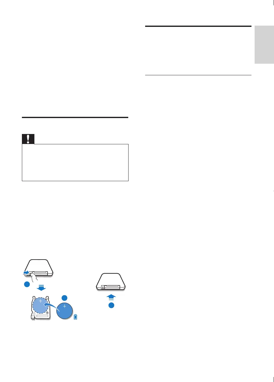 To replace the remote control battery: