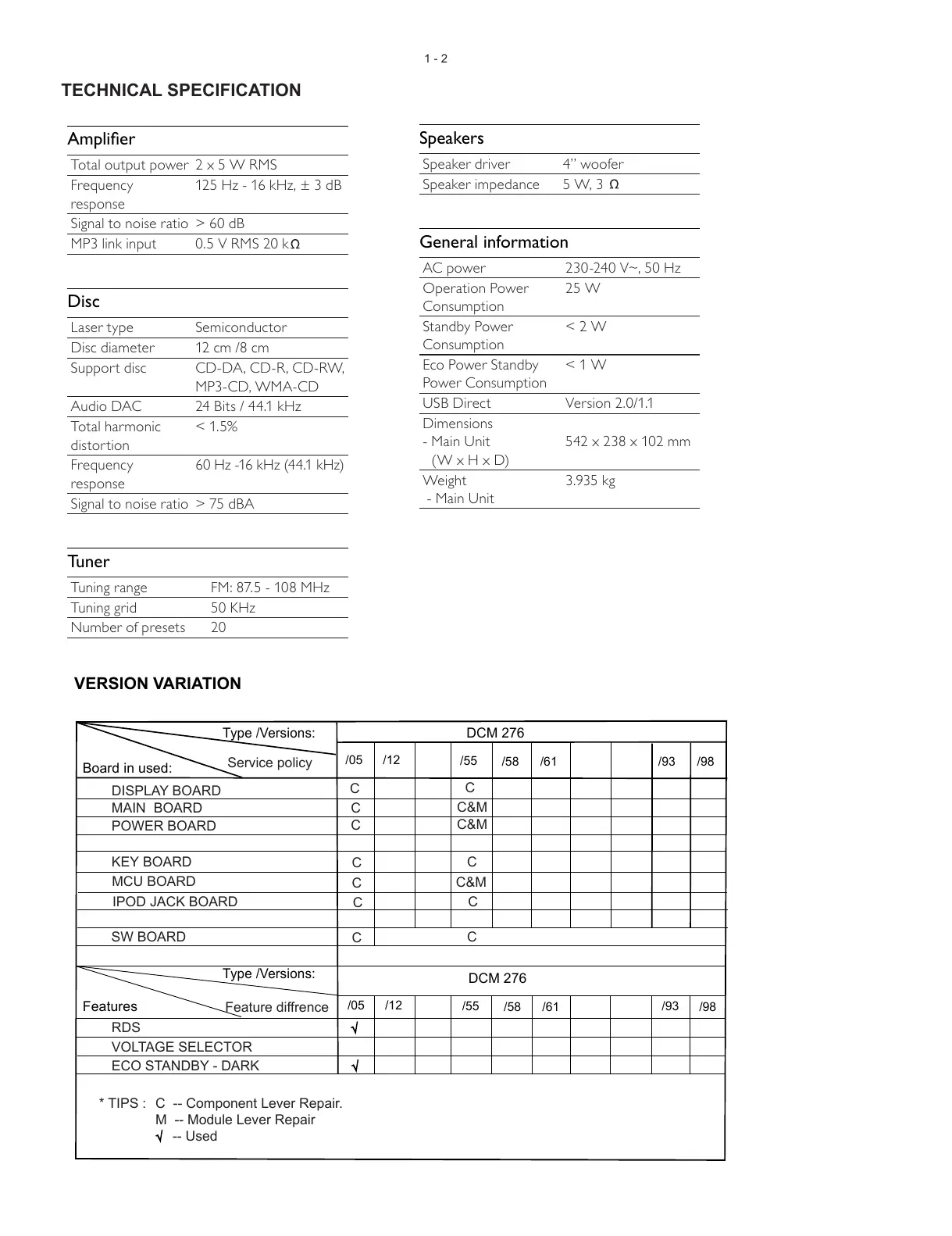 Total output power 2 x 5 W RMS