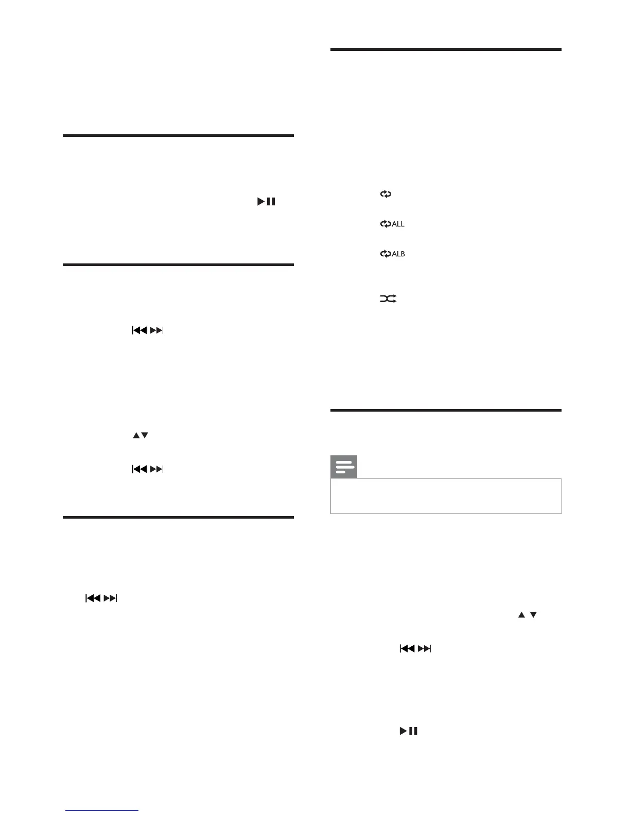 2 Premere / per selezionare un brano